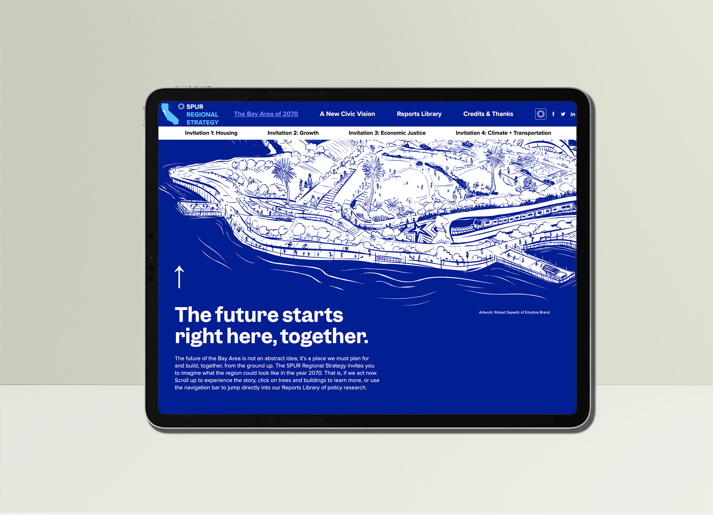 End-to-end project management of SPUR’s largest, most complex, multi-year policy research initiative. That includes one oversized custom scroll illustration, nearly 20 individual illustrations, data visualization animations, and nearly 40 reports.